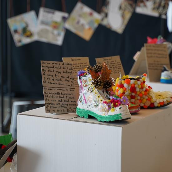 I værkstedet arbejder vi altid med naturmaterialer og genbrugsmaterialer i vores kreativitet. Vi bestræber os på at 90 % af de anvendte materialer er genbrug.