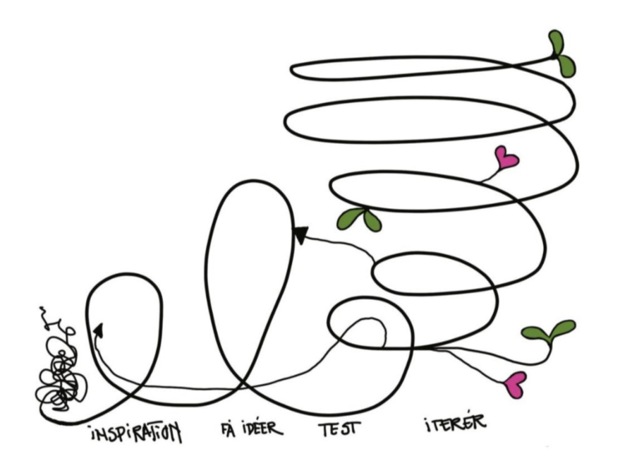 EN GOD RÆKKEFØLGE kan være at starte med at samle viden og inspiration, brainstorme og udvælge ideer og så prototype ideerne i virkeligheden og blive ved med at udvikle videre.