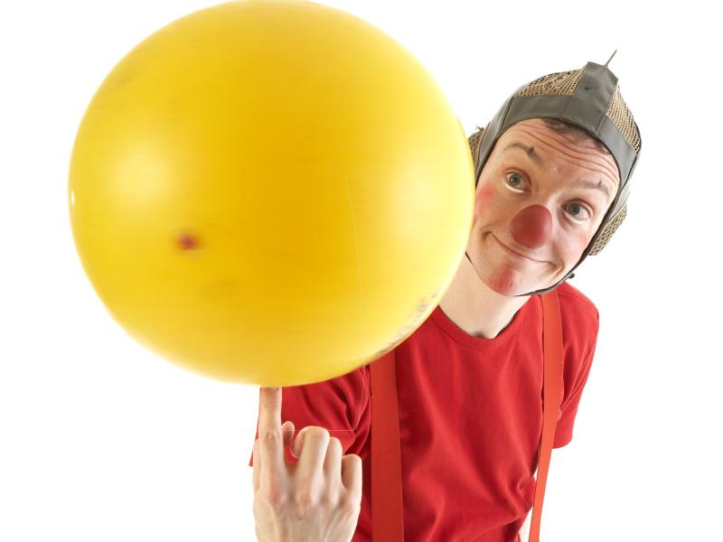 Klovnen Tapé tryller, jonglerer, balancerer og slår knuder på selv.