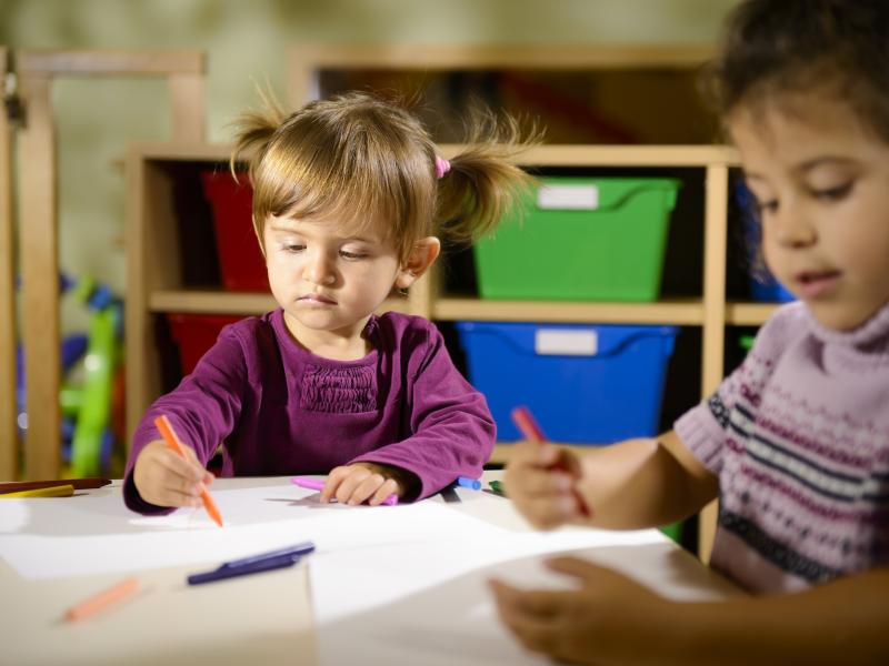 Børnene får mulighed for både at høre en historie, selv kigge i bøger og lege på biblioteket.